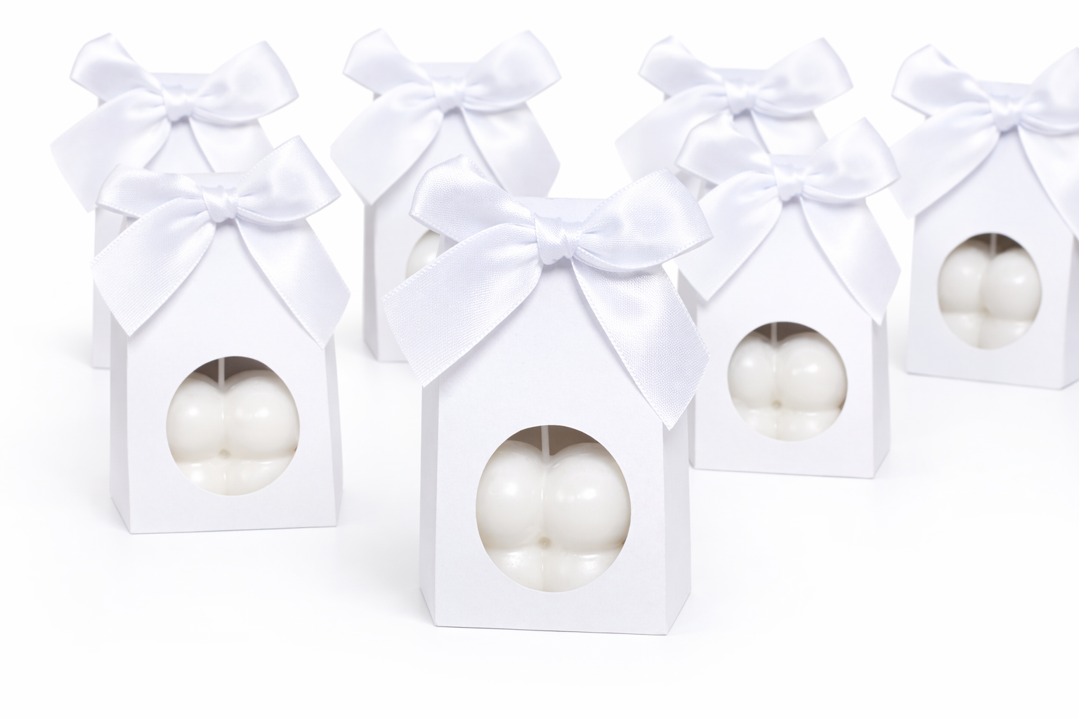Die Kerzen sind in verschiedenen Varianten erhältlich: pur, im Organza-Beutel mit schöner Schleife oder in einer edlen Geschenkbox.